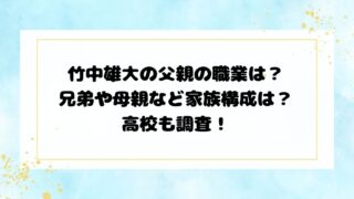 竹中雄大の父親の職業は?兄弟や母親など家族構成は?高校も調査!
